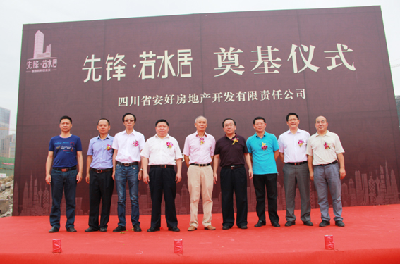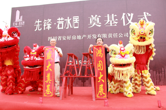 舞獅團(tuán)為若水居送上了財運與祝福。隨著四川省安好房地產(chǎn)開發(fā)有限責(zé)任公司董事長費永剛的一聲“開工”,與清華大學(xué)四川校友會會長,原成都市常務(wù)副市長顏家瑾、四川省安好房地產(chǎn)開發(fā)有限責(zé)任公司總經(jīng)理鄭志強,成都恒聯(lián)投資有限公司董事長陳智,四川昊冀投資有限公司董事長葉述明,西南設(shè)計院總規(guī)劃師鄭小明,四川西勘金地工程建設(shè)有限公司總經(jīng)理唐發(fā)杰,華西十二公司總經(jīng)理廖繼榮,書記趙立春為“先鋒若水居”培土奠基。